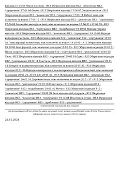 - Ліцензія збір, заготівля окремих видів відходів як вторинної сировини АГ №500691, термін дії необмежений;