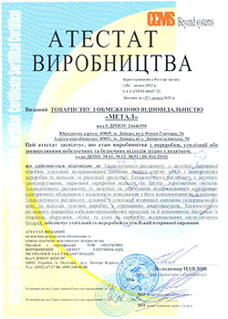 Асоціація українських підприємств вторинних металів «Втормет». Свідоцтво Мінекономіки України серія АА № 22 від 23.05.07 г.