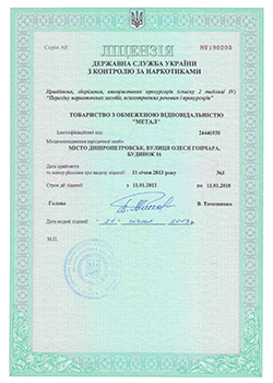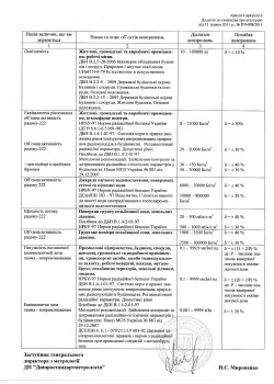 Лабораторії атестовані ДП «Дніпростандартметрологія»: свідоцтво вимірювальної лабораторії № ПЧ07-0/2239-2016 від 26.09.16 до 26.09.19р., свідоцтво хіміко-аналітичної лабораторії №ПЧ 06-2/7-2017 від 14.06.17 до 14.06.2020р., має ліцензію Державної архітектурно-будівельної інспекції серії АВ № 407628 на право проведення лабораторних досліджень атмосфери, літосфери і гідросфери (повітря, ґрунтів і води).